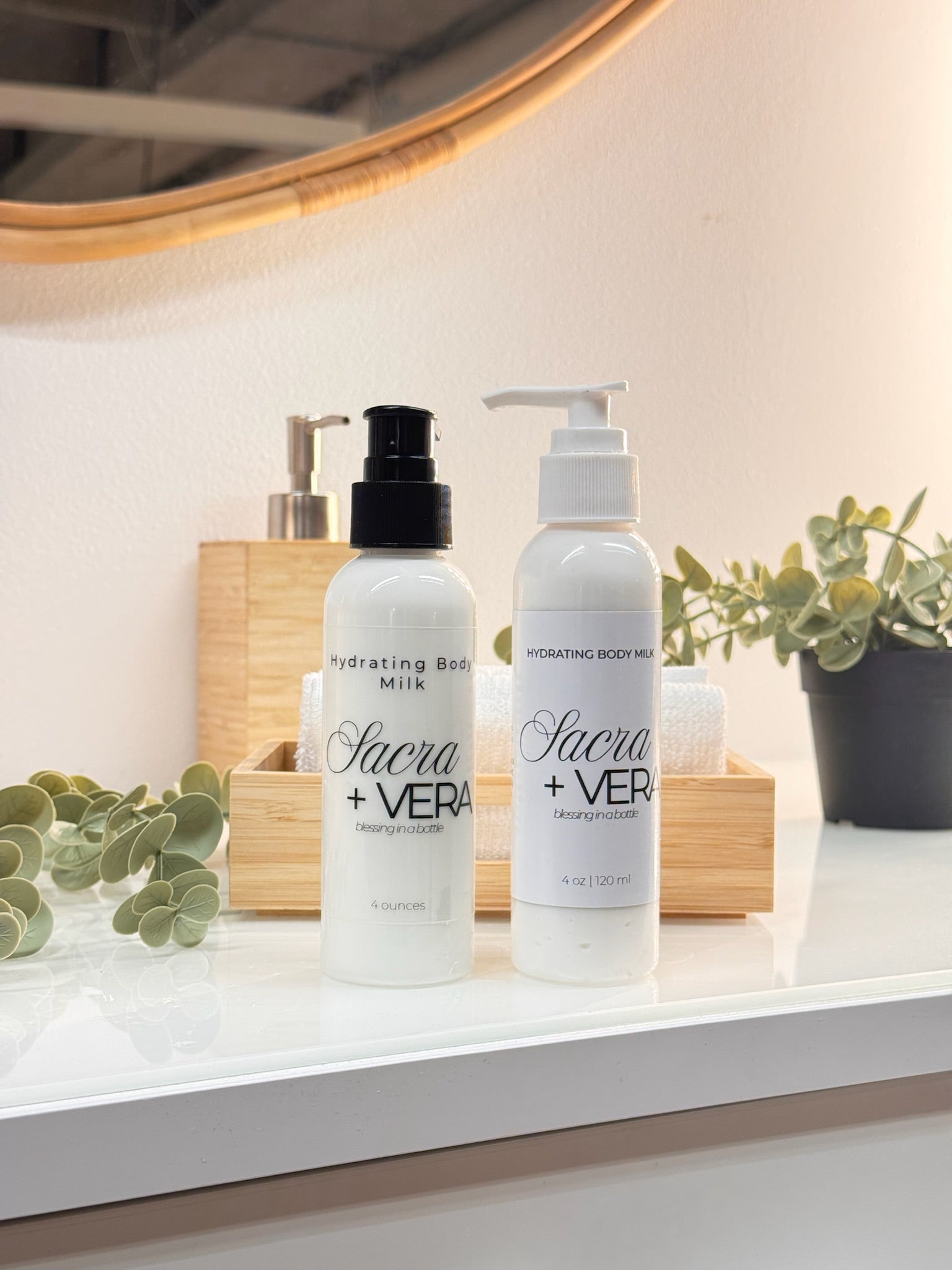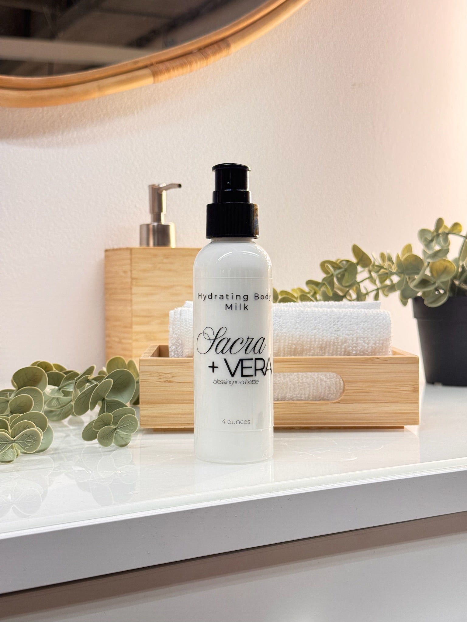 A silky, lightweight milk enriched with shea butter, grapeseed oil, aloe vera, and vitamin E.